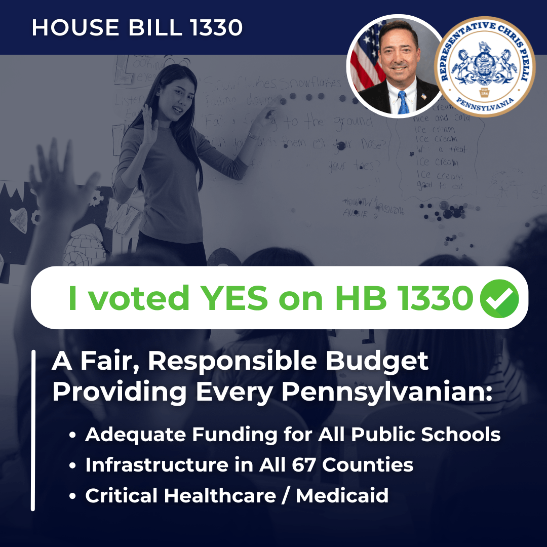 The PA House of Representatives have done just that. My colleagues I voted YES for bipartisan House Bill 1330 — a fair, responsible budget providing for infrastructure, health care, public education, and much more for the benefit of EVERY Pennsylvanian, while not raising a penny in taxes.