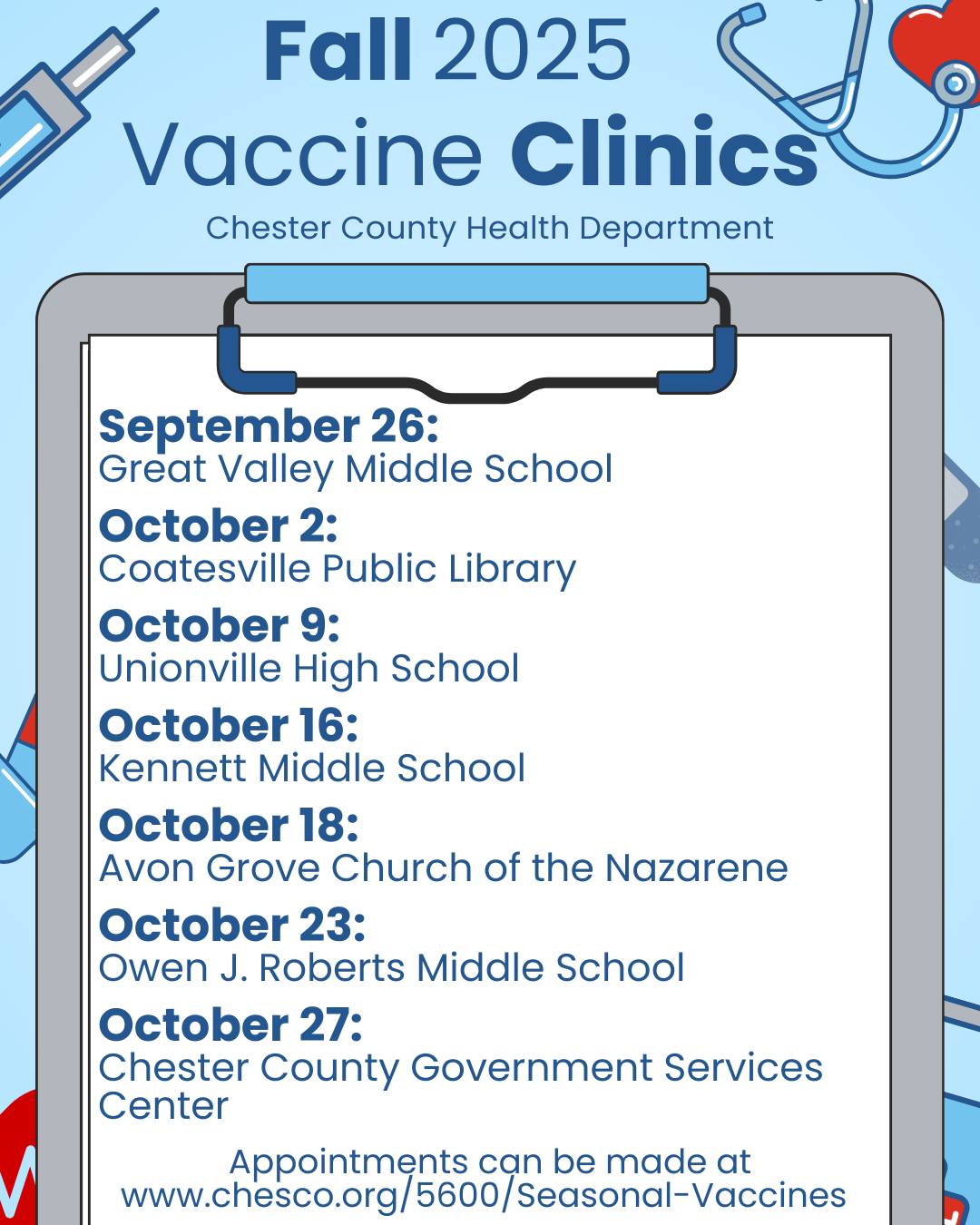 Vaccine Clinics Hosted by Chester County Health Department