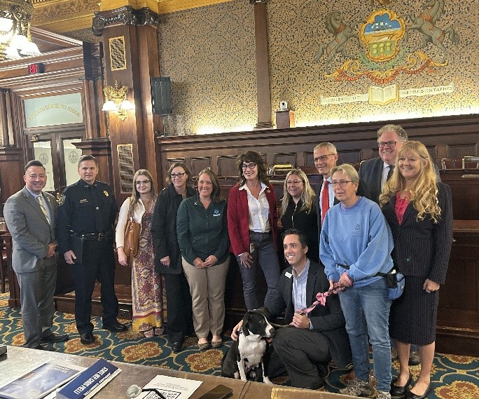 Joining me in the group photo are animal rights advocates and Judiciary Committee Chair Rep. Tim Briggs -- and "Beanie Baby," a pup who was up for adoption through the York County SPCA.