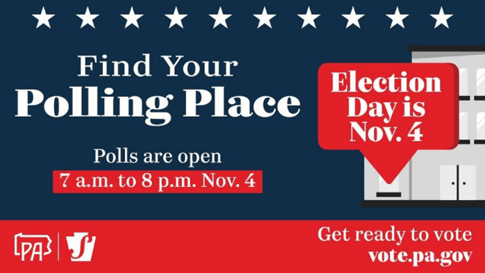 To find your polling place, please complete the official online form on the PA Department of State website HERE: Polling Place Information