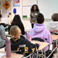 Rep. Lindsay Powell visits Shaler High School to speak to Civics Classes about the legislative process and award House Citations to essay winners who wrote about their suggestions on future legislation.
