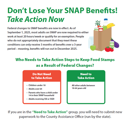 Please share the flyer above with any SNAP recipients you know and visit this website to learn more.