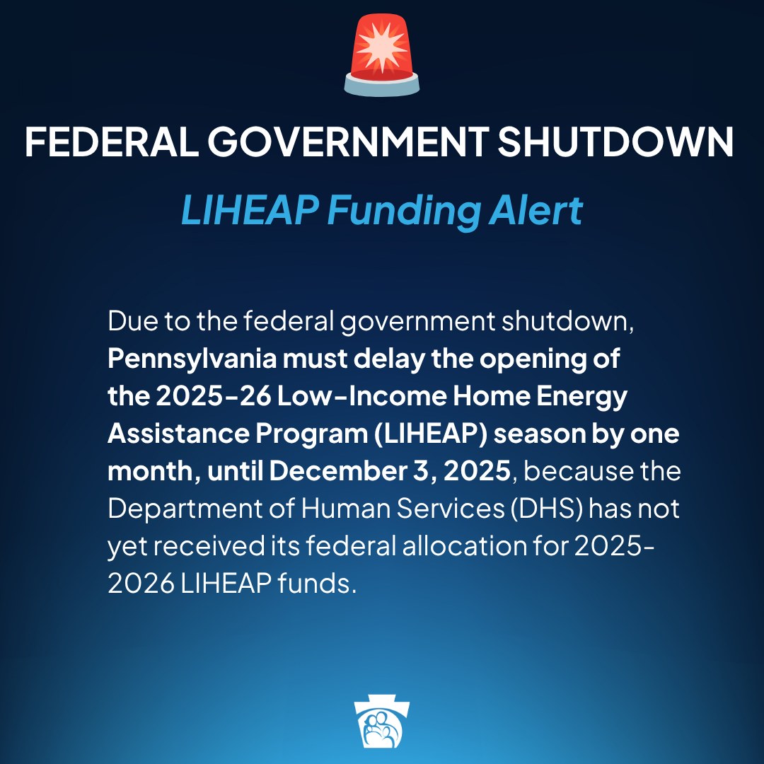 Additionally, Pennsylvania’s annual winter utility shutoff moratorium runs from December 1 through March 31 and prevents utilities—including electricity and gas services—from being shut off for customers of regulated utility companies whose income is at or below 250 percent of the Federal Poverty Level. While this moratorium prevents shutoffs during the coldest months of the year, it does not cancel a customer’s outstanding home-heating bills. LIHEAP funding remains essential for individuals who need assistance keeping their homes heated.