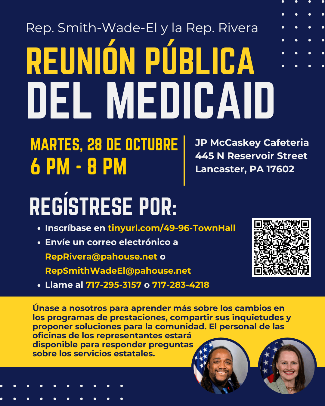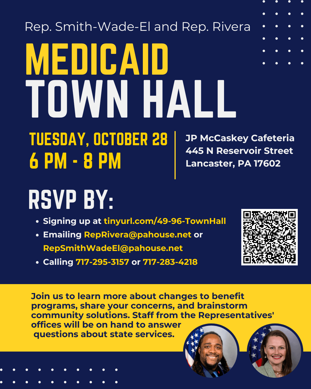 I am co-hosting with state Rep. Nikki Rivera a Medicaid Town Hall from 6 p.m. to 8 p.m. Tuesday, Oct. 28 at the J.P. McCaskey High School Cafeteria, 445 N. Reservoir St., Lancaster.
