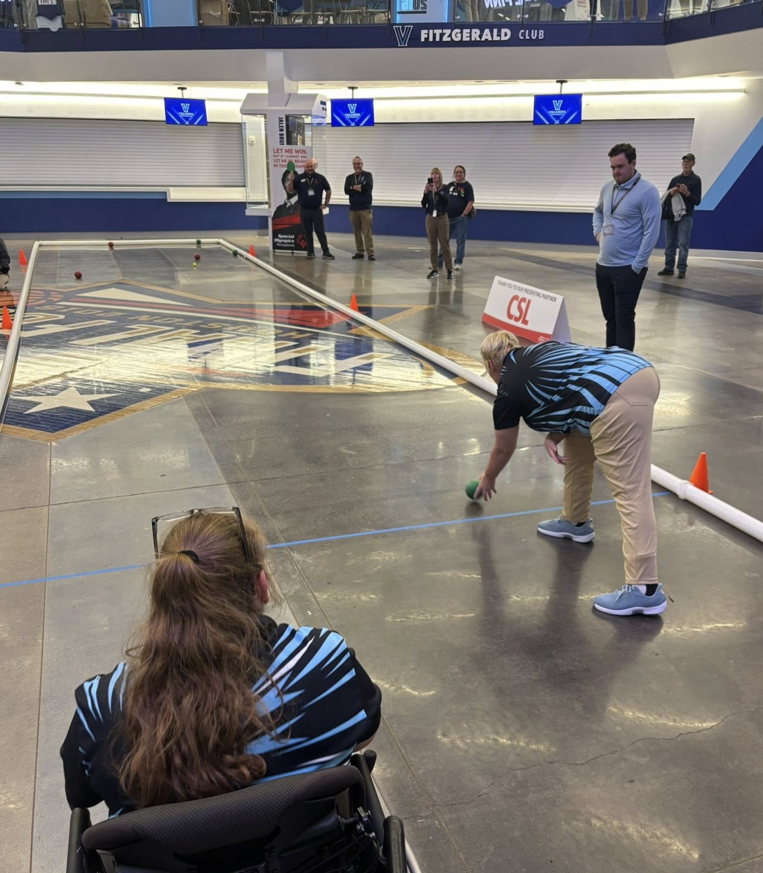 I had a great time playing in the exhibition bocce match (note to self for next year… wear sneakers!). Even though we lost, the Olympians I played with, Haley and Kathy, were kind enough to offer advice on my technique—bocce indoors is very different from bocce on the beach in SIC. I’ll be ready to win next year!
