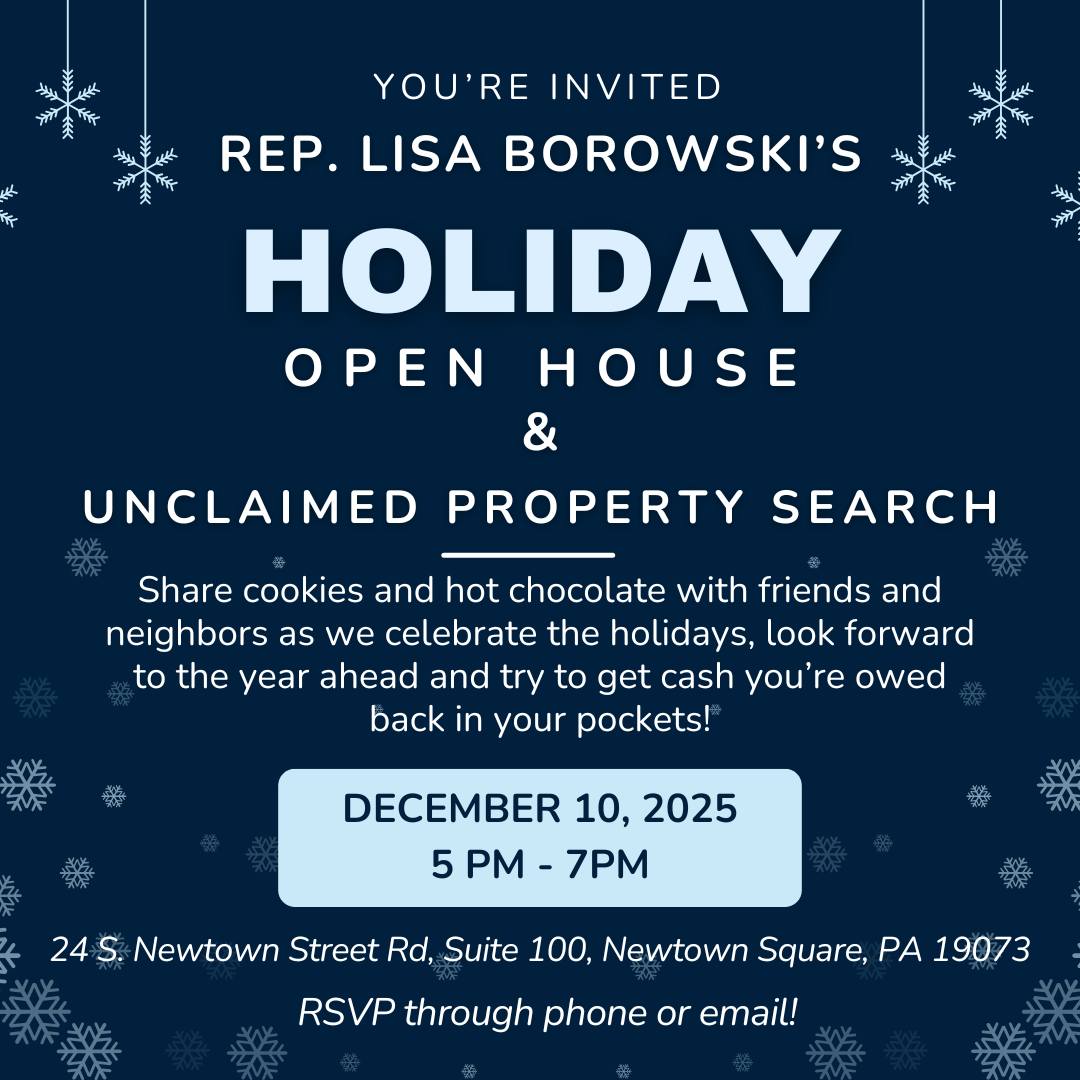 - Holiday Open House & Unclaimed Property Search (Dec. 10)