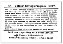 The latest scam targeting veterans’ benefits is more sophisticated than many others. It involves a direct-mail postcard claiming to offer eligible veterans an additional $160 per month through something called the “PA Veteran Savings Program 2025.” This program does not actually exist.