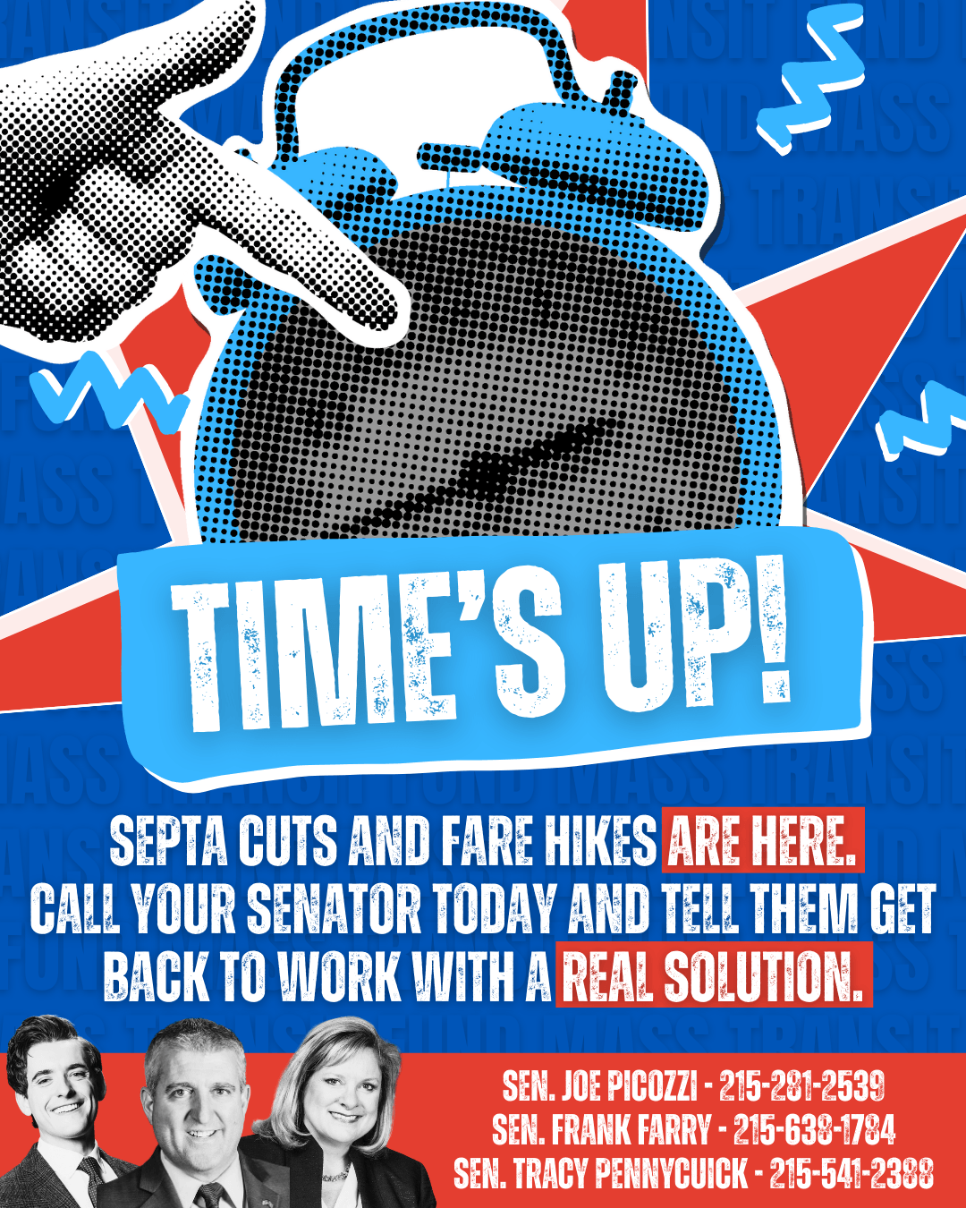 We're in a crisis moment, and now is the time for action. Please reach out to Senate Republicans HERE and demand they get back to work for the people of Pennsylvania and deliver a real, sustainable plan to fund public transit.