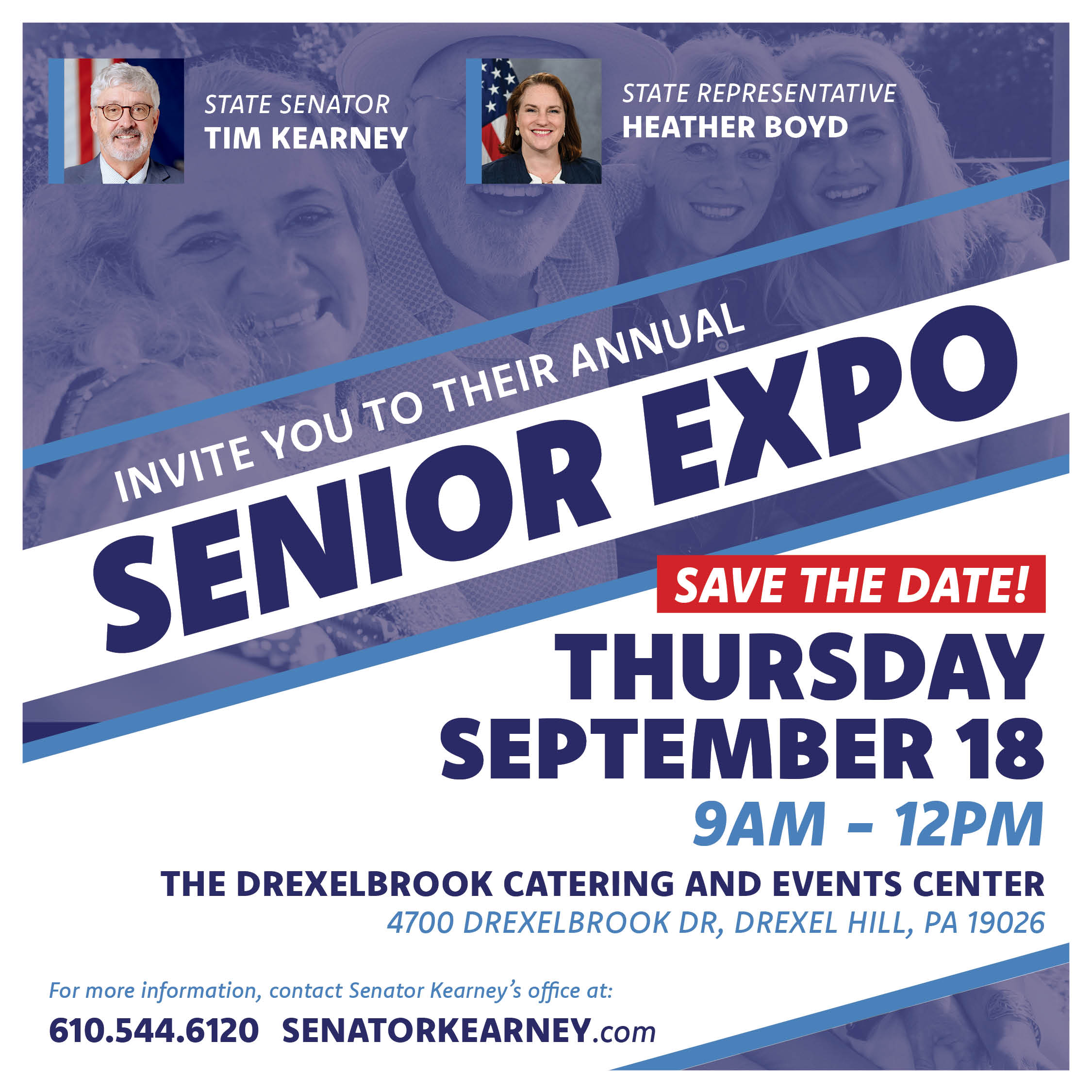 You’re invited to my annual Senior Expo with Senator Tim Kearney! On Thursday, we’ll be at the Drexelbrook Catering and Events Center for anyone who wants to learn more about senior resources and programs.