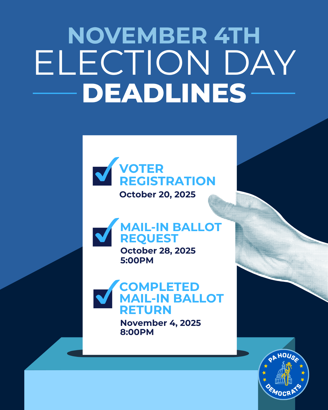 To register to vote or request a mail-in or absentee ballot, visit: vote.pa.gov.