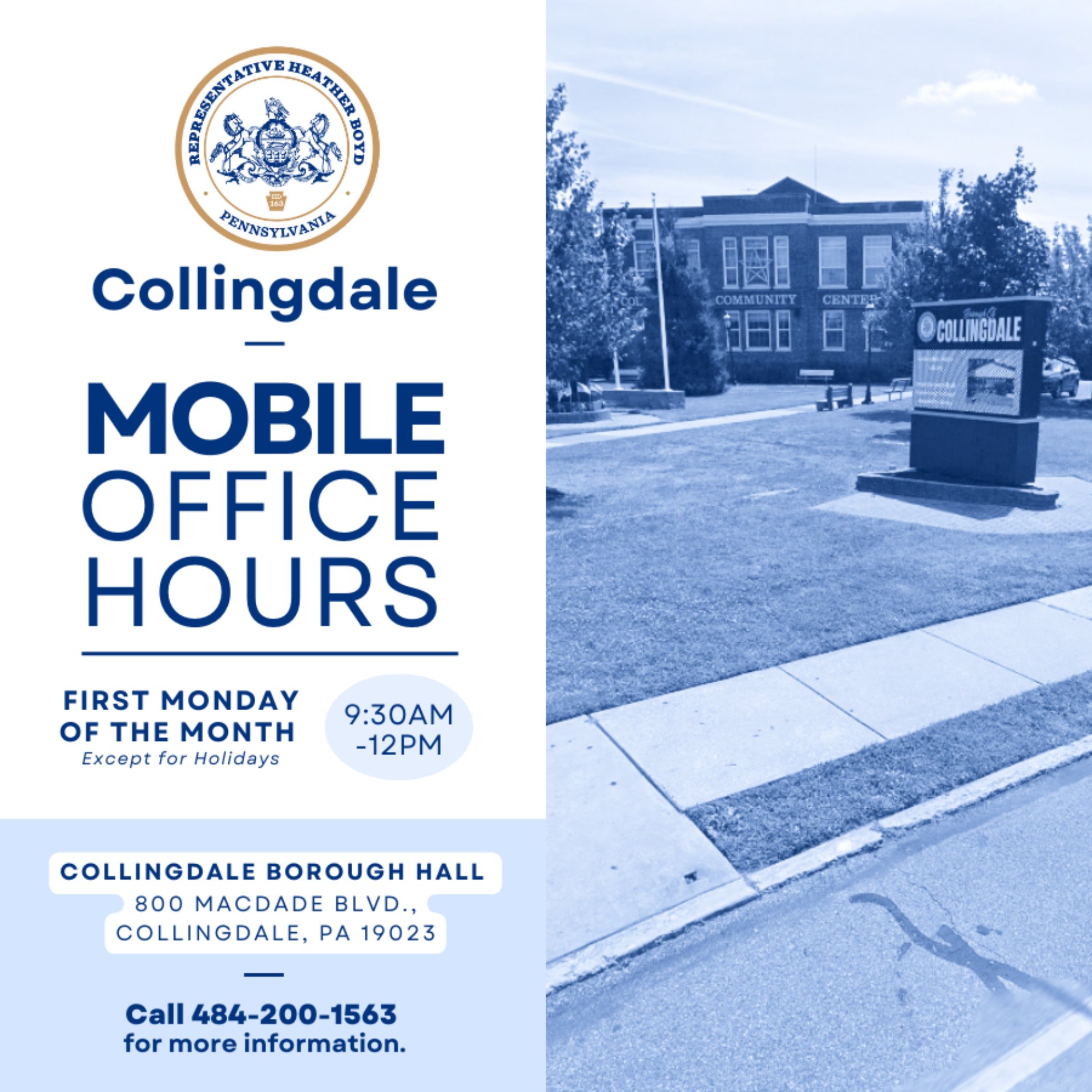 We’re bringing services right to your doorstep! On Monday, Dec. 1, visit us at Collingdale Borough Hall during our mobile office hours. Stop by to learn about all the amazing resources available to you.