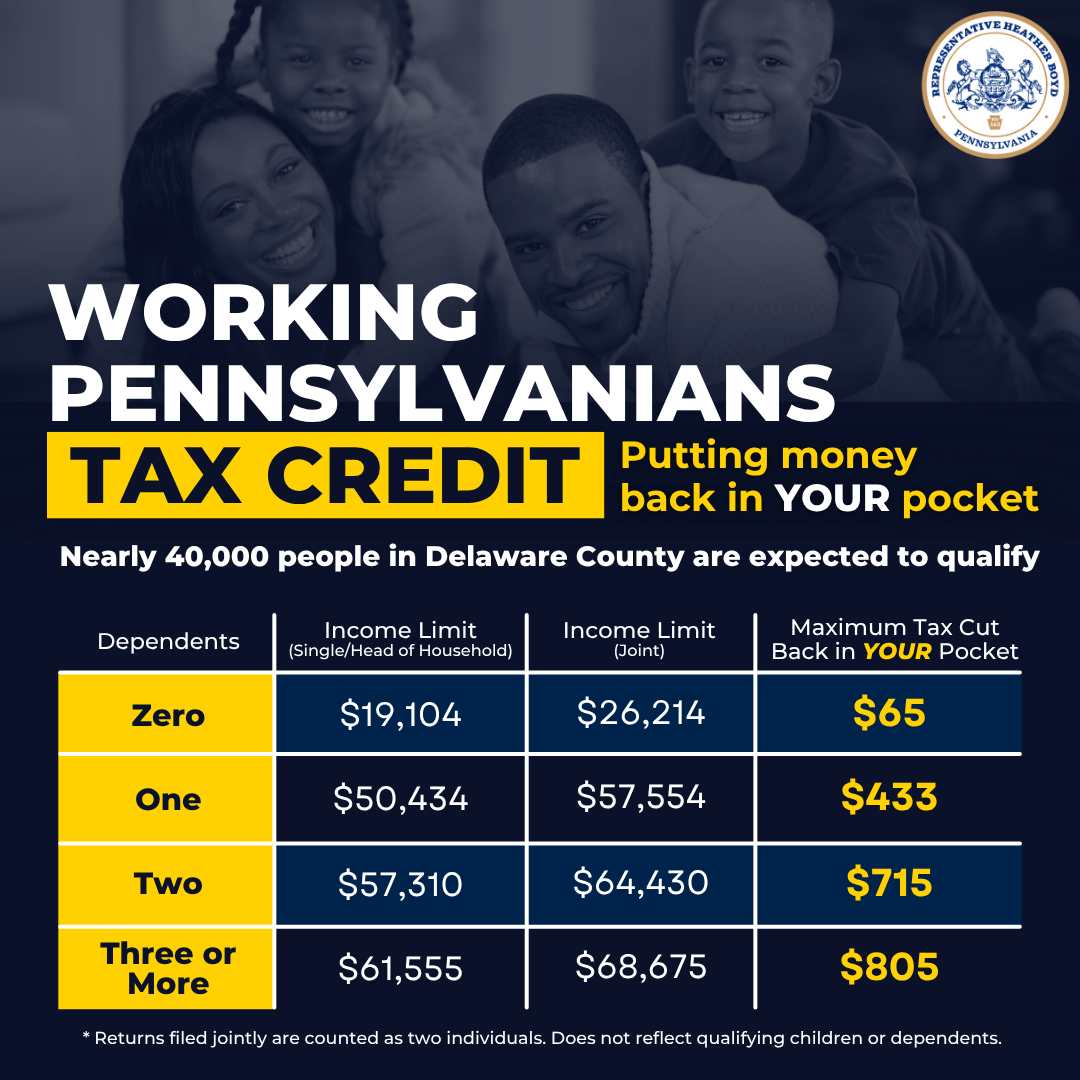 I was proud to once again cut taxes for working families as part of this year’s budget. Right here in Delaware County, we have just under 40,000 Working Pennsylvanian Tax Credit recipients. That could mean up to $800 back in their pocket at tax time!