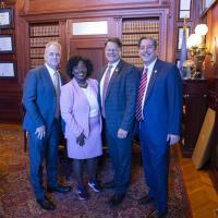 Rep. Tim Brennan hosted a House Majority Policy Hearing in his district at New Hope-Solebury High School on September 8, 2025. Testifiers were: former Congressmen James Gerlach and Joe Hoeffel, who founded PA Civics; Lauren Cristella, President of the Committee of Seventy; and Shannon Salter Burghardt, an educator at the Allentown School District and chair of the Educating for American Democracy Teacher Leadership Task Force. Mark Schweiker, Pennsylvania’s 44th Governor, delivered an introduction.