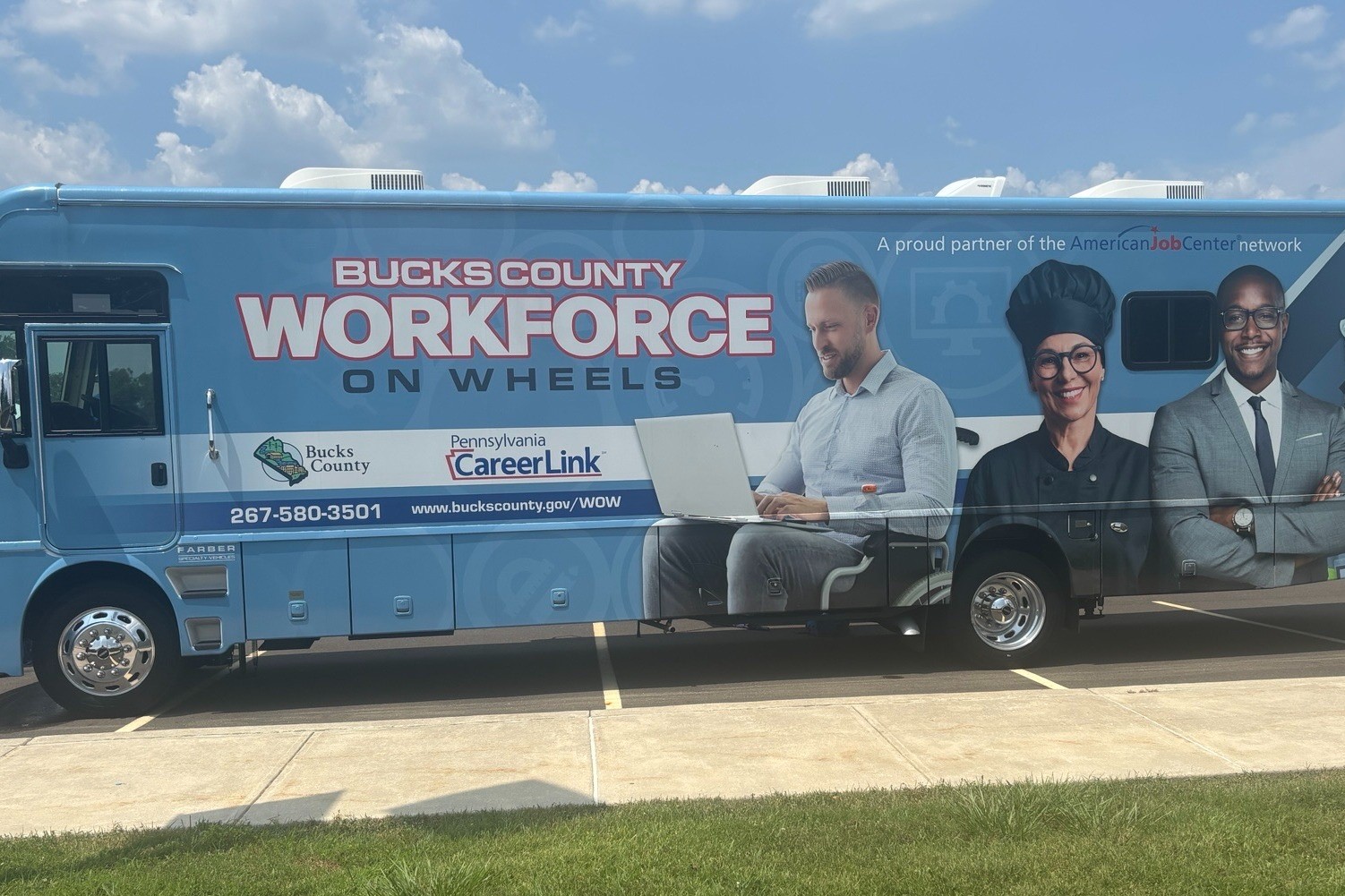 CareerLink’s WOW (Workforce on Wheels) bus gives a way for job-seekers in Bucks who don’t live near its office in Trevose to meet in person with CareerLink Bucks experts – it was recently at Bucks County Community College, and my staff took the opportunity to check it out!