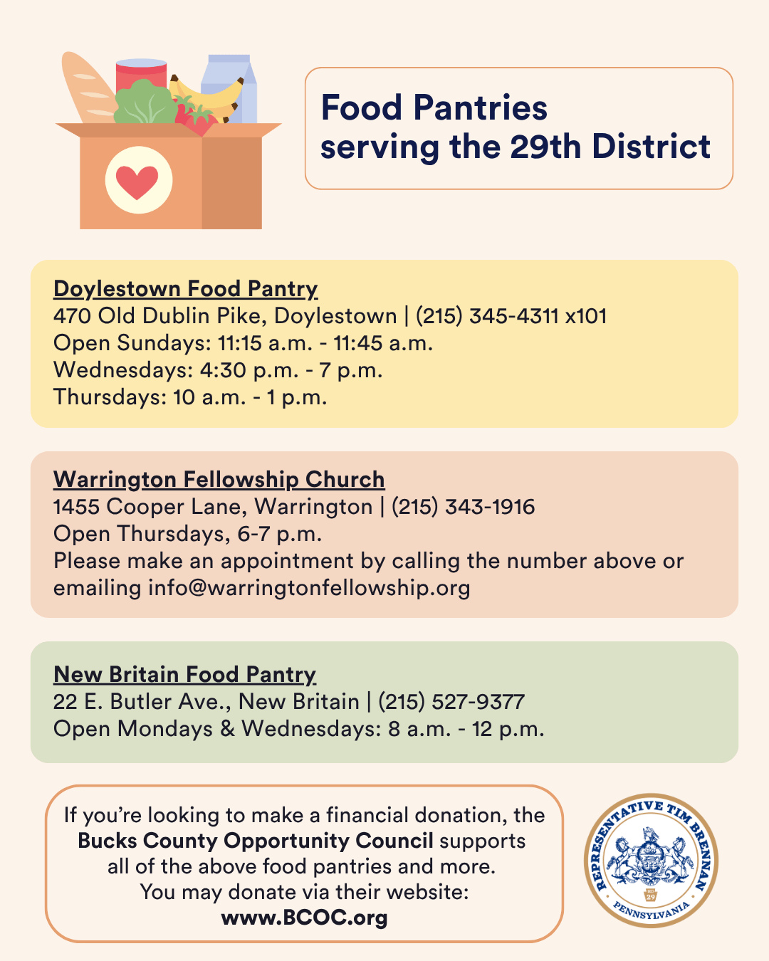 Please see the first story below for information on local food banks, and my office's food donation drive that's underway through November 20th, and the Shapiro Administration's responses so far to the situation -- including the announcement he made today in Philadelphia.