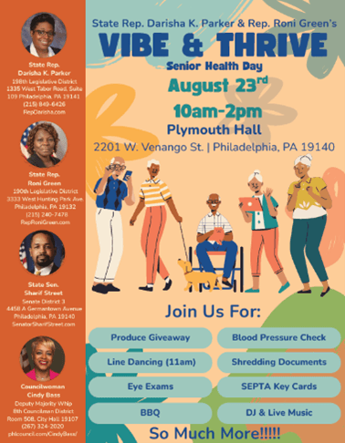 Join us tomorrow at our Vibe & Thrive Senior Health Day, from 10 AM - 2 PM at 2201 W. Venango St. There will be a produce giveaway, eye exams, live music, and more!