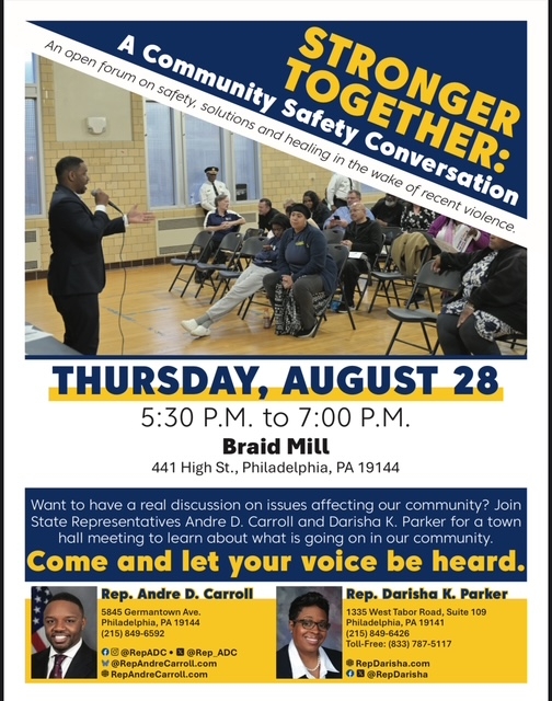 I’m partnering with my colleague State Rep. Andre Carroll for a Community Safety Conversation. Let your voice be heard.
