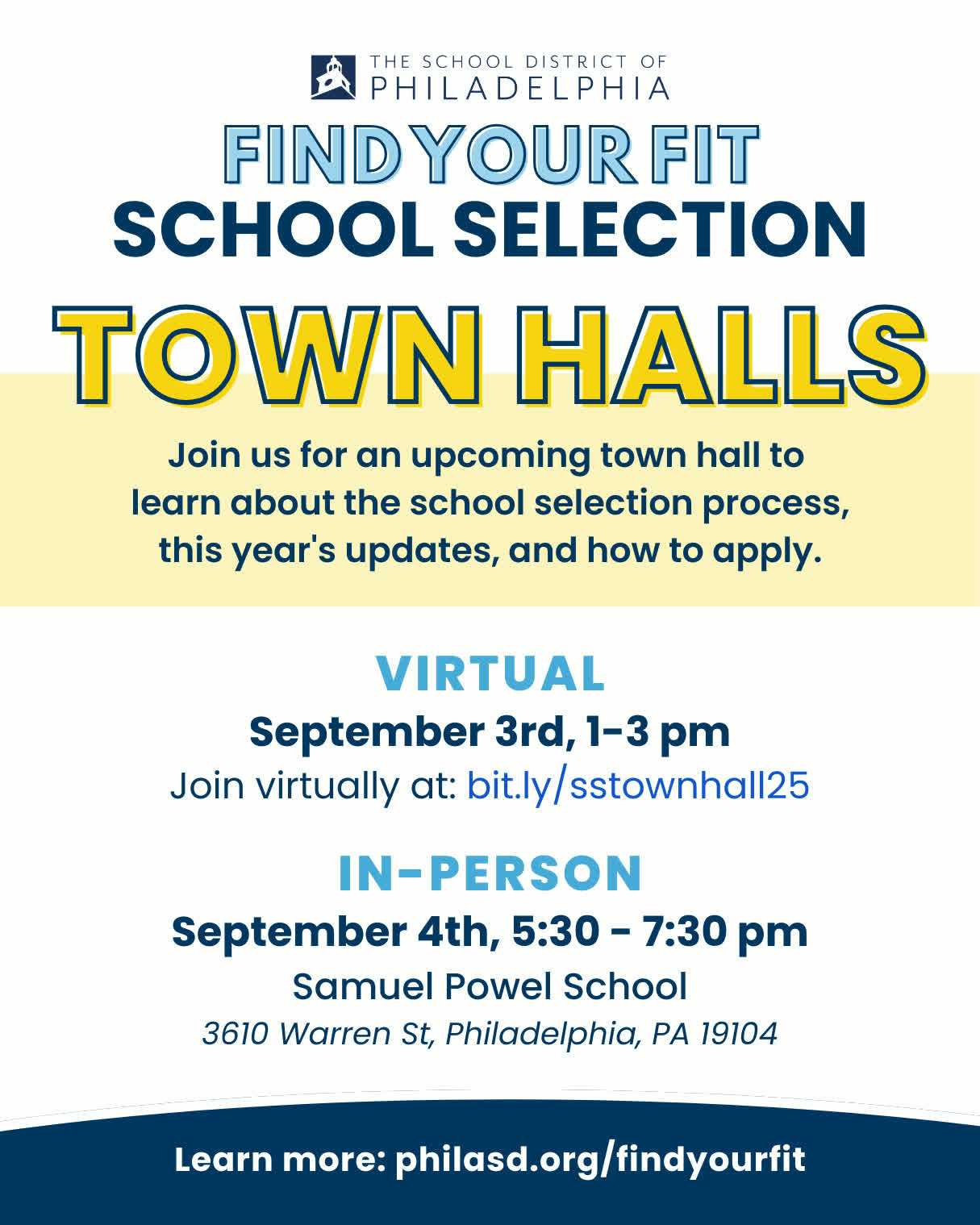 While school selection for the 2025–26 school year is now closed, I want to alert you to two upcoming opportunities to learn more about this process, which allows students in Pre-Kindergarten through 11th grade to apply to attend any school with available space outside their designated catchment area.