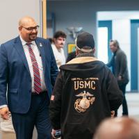 Veterans and members of the Armed Forces gather at Soldier's Grove at the State Capitol in Harrisburg to recognize the 50th Anniversary of the Prisoners of War and Missing in Action Remembering.