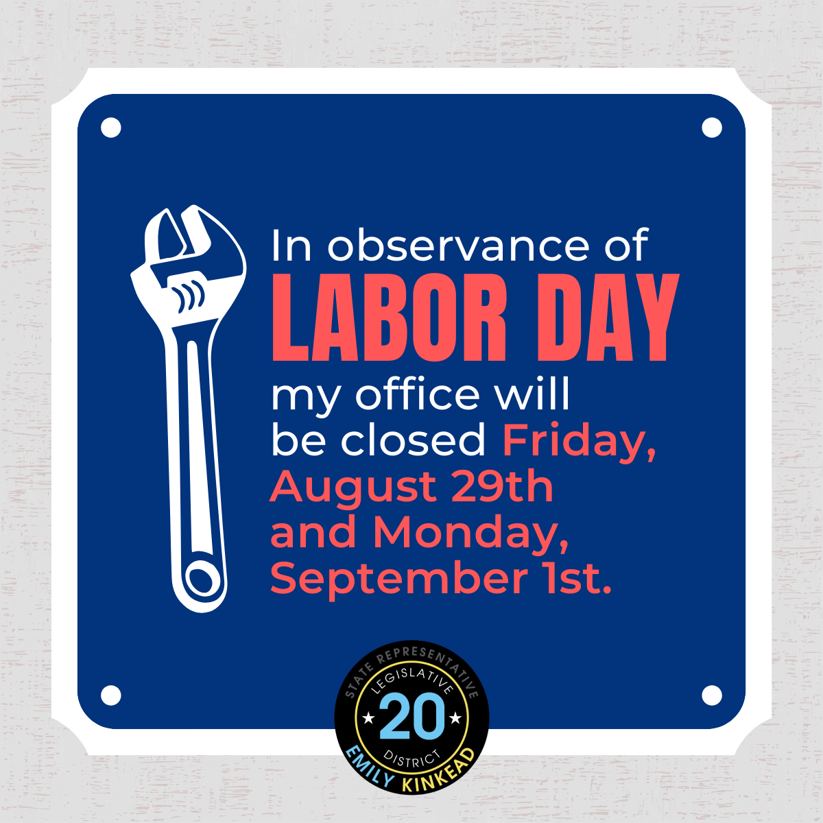My office will be closed on Friday, August 29 and Monday, September 1 in observance of Labor Day.
