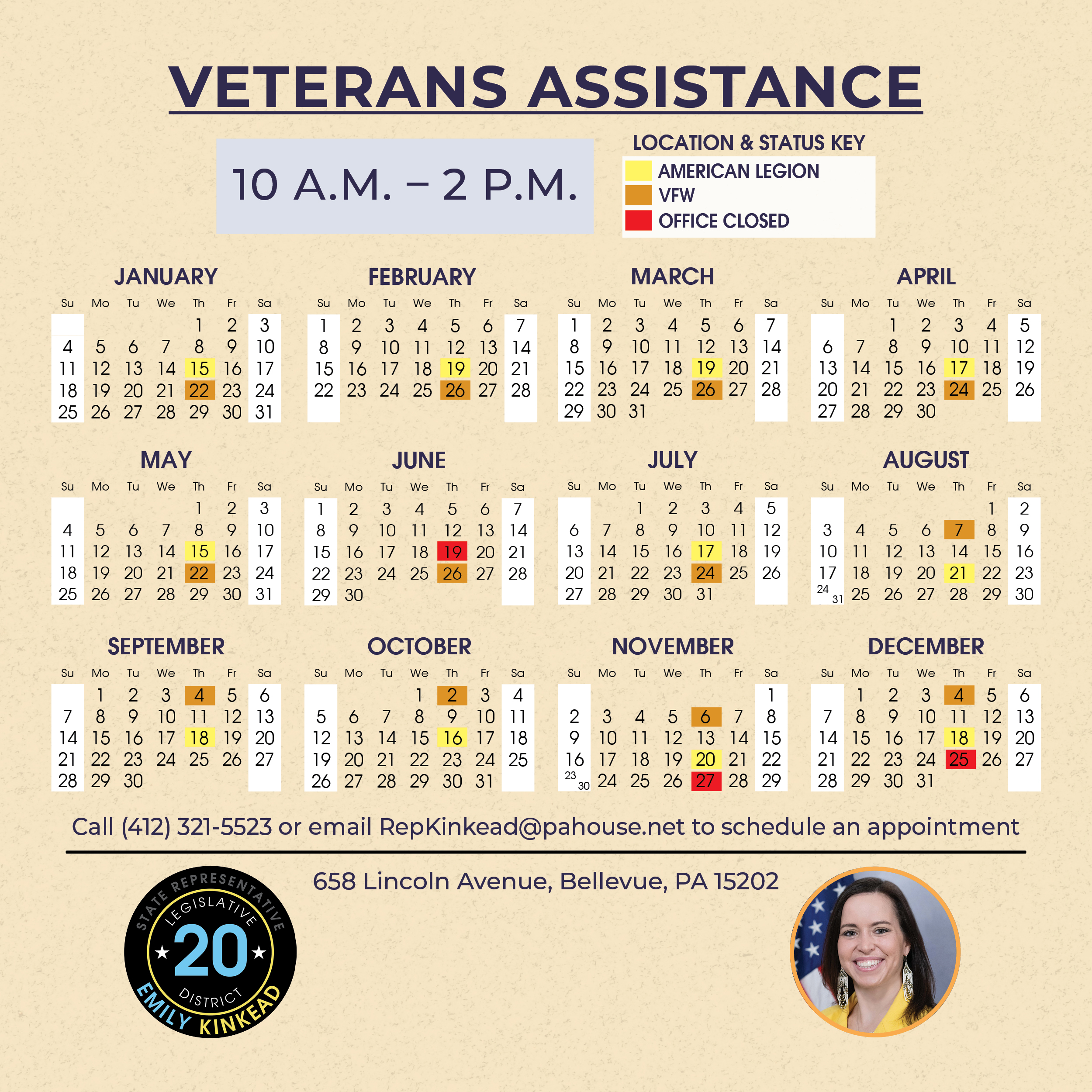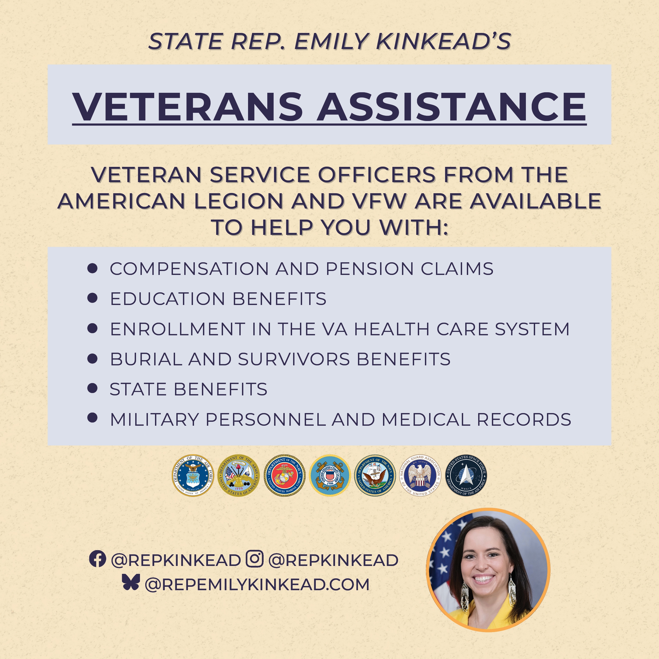 My office hosts officers from the American Legion and VFW on the first and third Thursdays of every month to help veterans get connected with all the benefits they are eligible for. If you know a veteran, have them contact my office to set up an appointment.