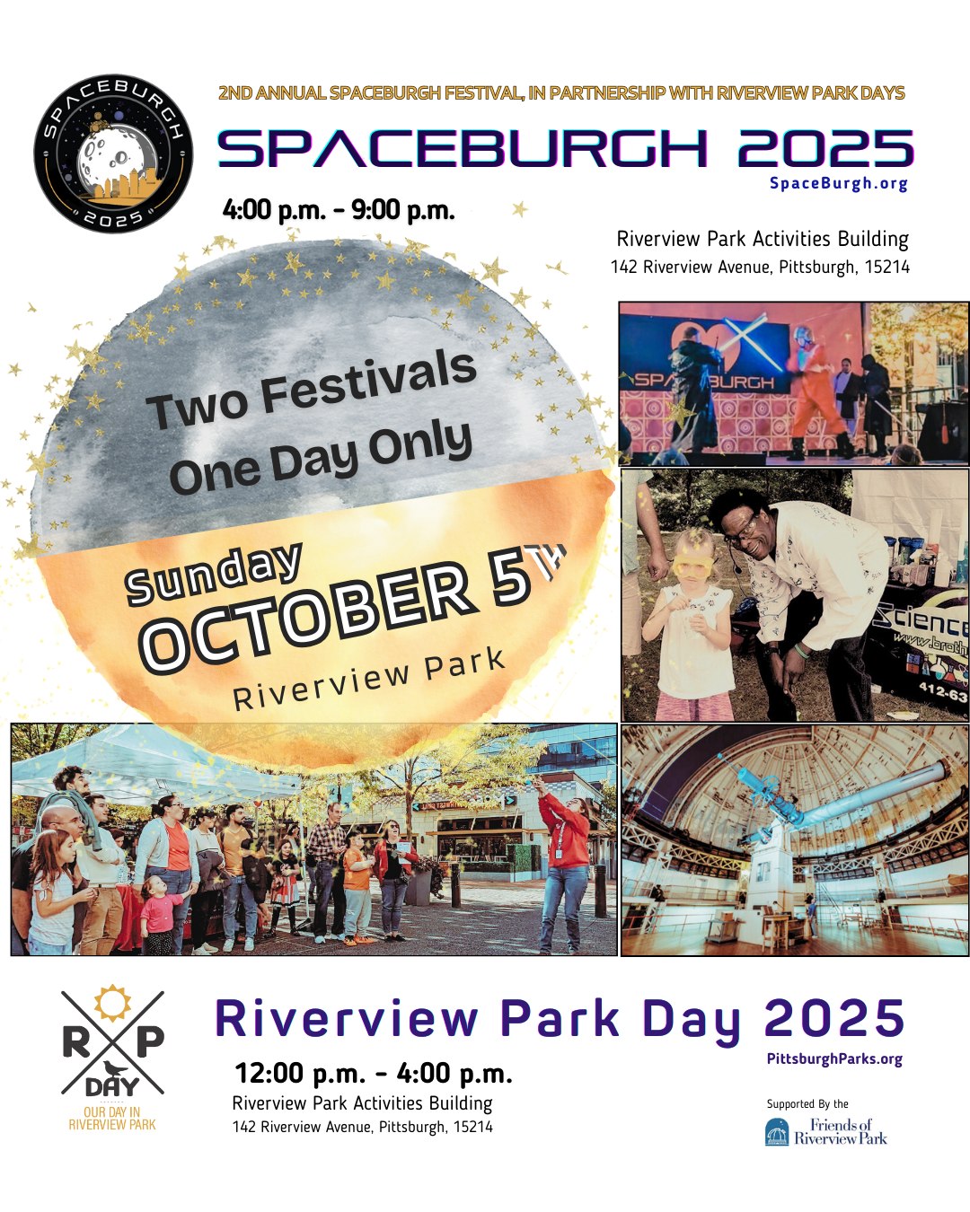 Riverview Park Day 2025 and Spaceburgh 2025 are both happening in Riverview Park on Sunday, October 5. Volunteers may sign up here.