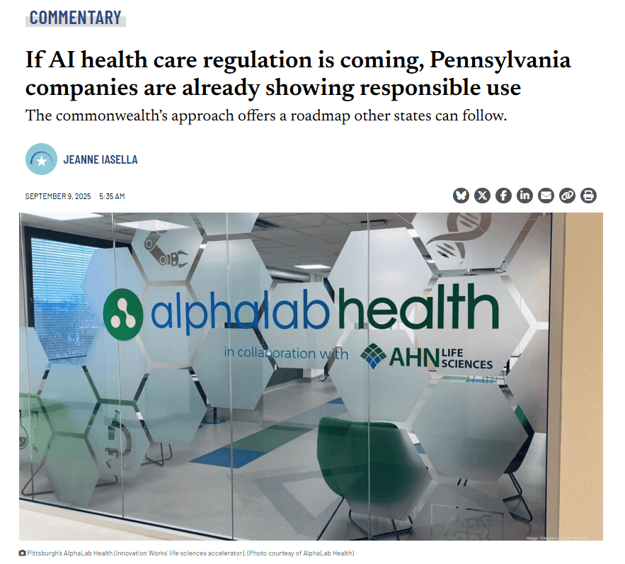 I’m proud to share that a company right here in Bellevue is at the forefront of using artificial intelligence to improve health care. Pennsylvania has been laying the groundwork for responsible AI innovation for years — ensuring new technology supports doctors, protects patients, and creates good jobs in the process.