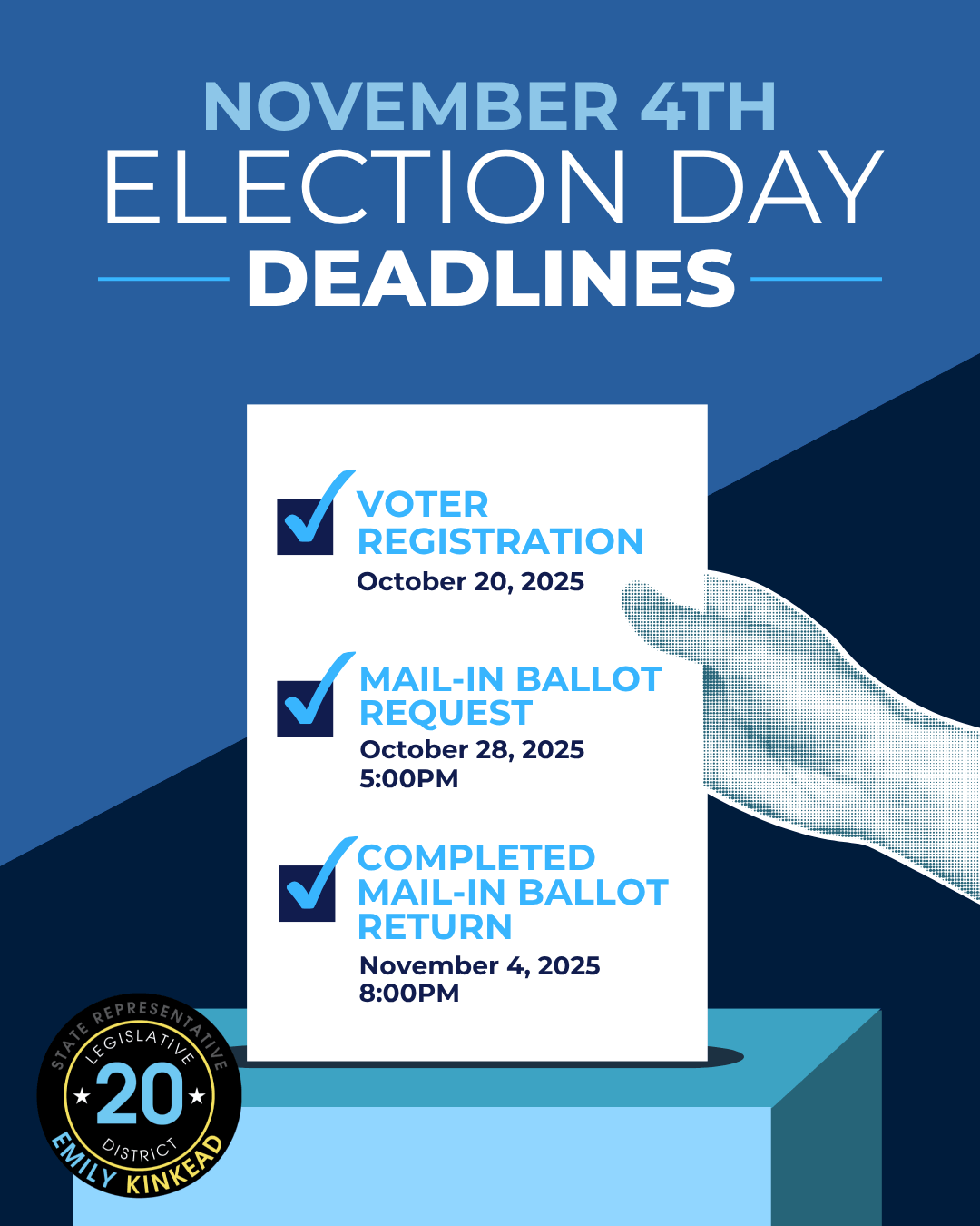 If you have questions about anything in this email or need assistance with any state-related matter, my staff and I are here to help! Reach out at RepKinkead@pahouse.net or call 412-321-5523.