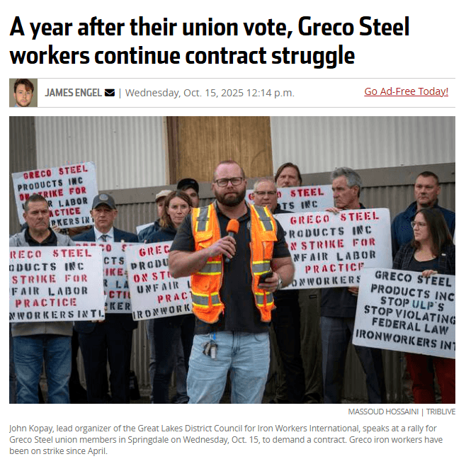 On Wednesday, I stood with the striking workers from Greco Steel, who voted to unionize but whose employer refuses to negotiate or even recognize their union. I am proud to support them and defend their right to organize. I will always stand with working people.