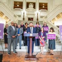 Rep. Emily Kinkead hosts a news conference with other Democratic lawmakers to introduce a powerful package of bills aimed at strengthening and growing reproductive rights and health care for the people of Pennsylvania.
