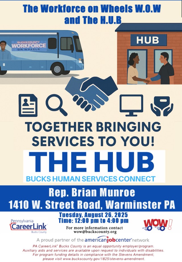 Stop by for help with job searches and resume writing from Bucks County Workforce on Wheels!