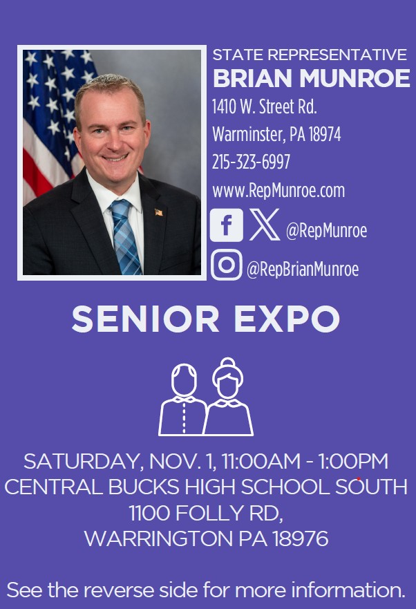 There’s still time to register for my Senior Expo taking place tomorrow, November 1 from 11 a.m. to 1 p.m. at Central Bucks High School South. Come out to learn about important state programs and services available to our senior residents, from prescription assistance to SEPTA senior fare cards. You can register here.