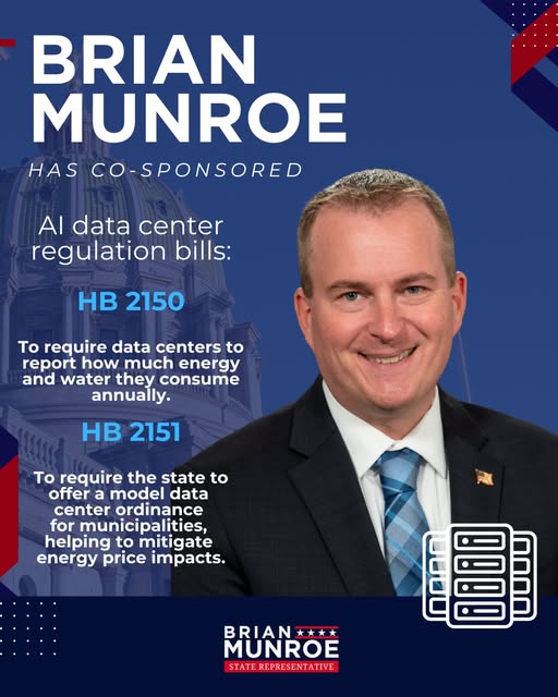As such, I am proud to announce that I am co-sponsoring HB 2150 and HB 2151 -- two bills that would regulate AI data centers in Pennsylvania, and address some of the issues that have arisen.