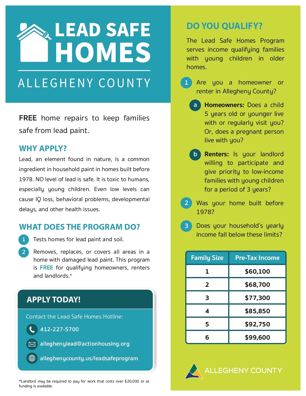 Allegheny County has a program where qualified families with young children can have lead paint removed from their homes. More information can be found here.