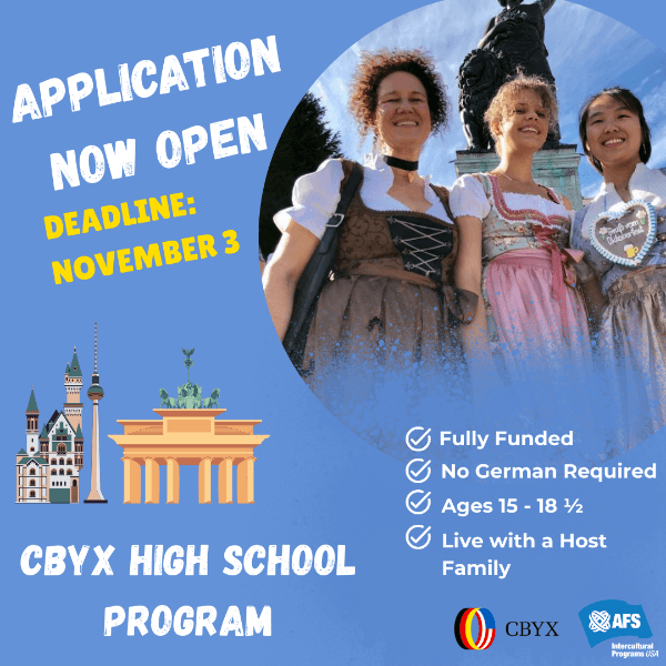 The Congress-Bundestag Youth Exchange, which fosters connections between the United States and Germany by selecting outstanding young leaders to learn in each other’s nations, has opened their 2026-27 program for applications.