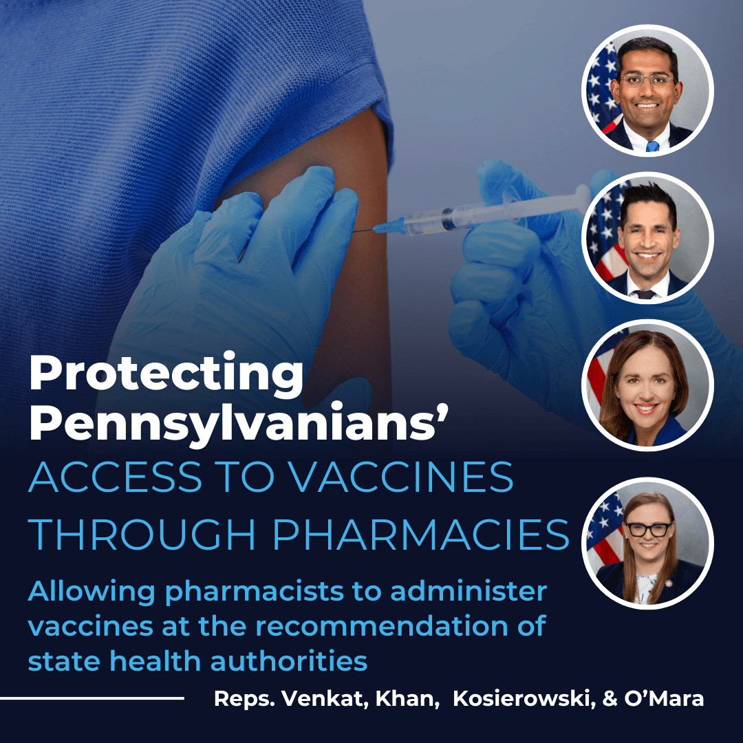 That is why I am partnering with Reps. Khan, Kosierowski, and O’Mara to introduce legislation that will protect Pennsylvanians’ access to vaccines administered by pharmacists across our state.