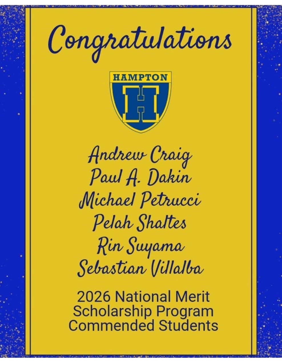 Six students from Hampton Township School District were named Commended Students in the 2026 National Merit Scholarship Program for their exceptional academic promise. These students ranked among the top 50,000 who entered the 2026 competition by taking the 2024 PSAT. Congratulations on your outstanding academic achievement!