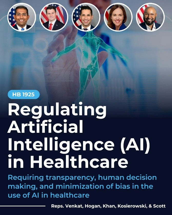 Artificial Intelligence has already made a profound change in healthcare, and its impact will continue to grow. For all of its promise, it is imperative that we ensure transparency, human decision making, and protection of privacy and against discrimination and harm when AI is used by clinicians, healthcare facilities, and insurers.   This week, I partnered with a bipartisan group of my colleagues to introduce H.B. 1925 to regulate the use of AI in healthcare, to make sure that all Pennsylvanians know that AI is being used effectively and ethically. |