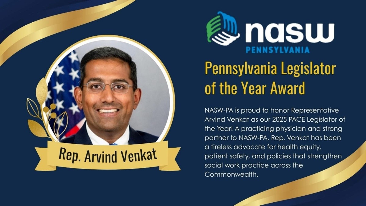 I am honored to be recognized by the Pennsylvania Chapter of the National Association of Social Workers as their Legislator of the Year. As an emergency physician, I have worked with social workers my entire career and seen firsthand how critical their work is for our community and state. I will continue to stand with them in their advocacy for their profession and all Pennsylvanians. |