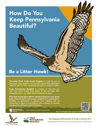The program deadline is January 31, 2026. Contest details and the application can be found here: Litter Hawk Youth Award Program - Keep PA Beautiful.