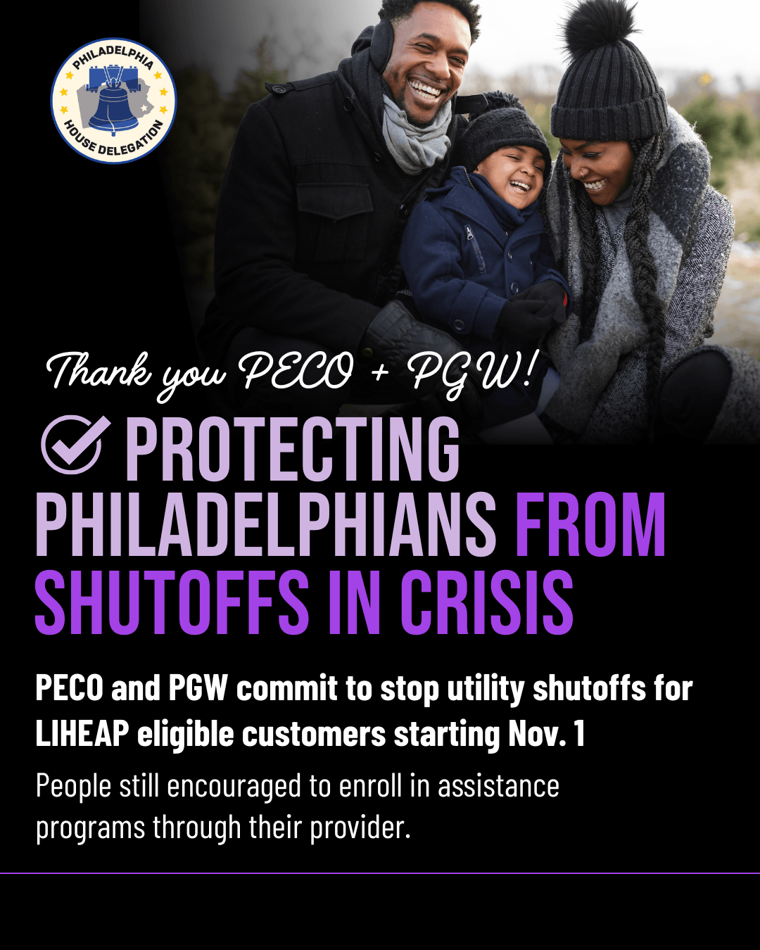 PGW and PECO have agreed to pause shutoffs because of non-payment for LIHEAP eligible customers until the program reopens, and this week the PUC announced they have commitments from utility companies that they will not terminate heat or electricity in November for LIHEAP-eligible Pennsylvanians impacted by the federal government shutdown. PGW & PECO have their own assistance plans so if you’re in need you must contact them directly about their plans or click here for information from the PUC.