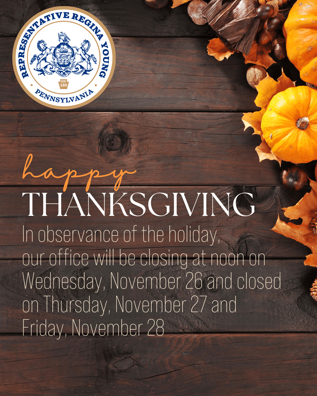 Even though our 2025-26 state budget includes over $40 million to address food insecurity across the state, including $5 million in new funding for Pennsylvania food banks and $2 million to supplement SNAP, many working families are still facing rising costs for food, housing, childcare, and utilities. In this season of Thanks, I’m hopeful that as a community we can come together to support one another.
