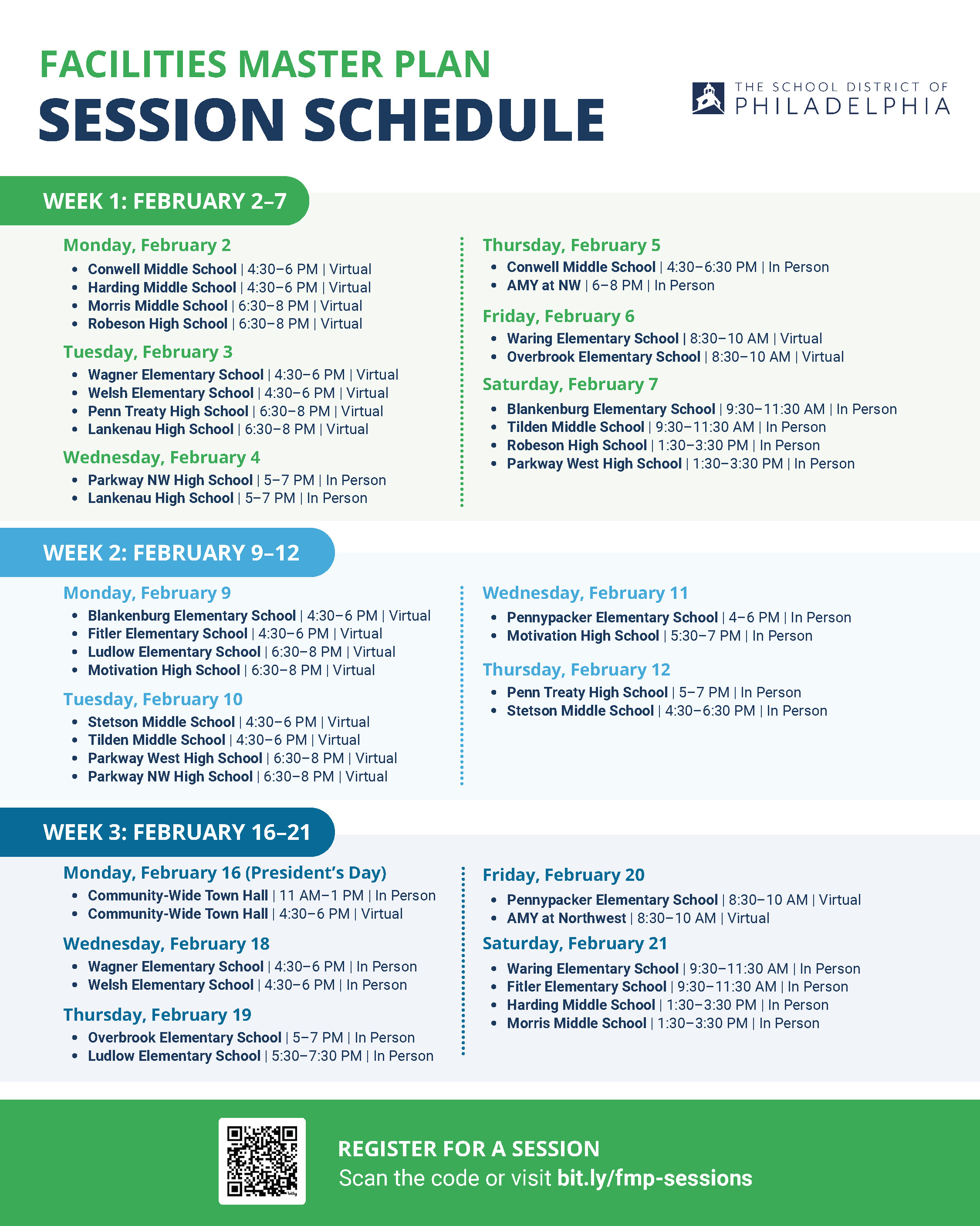 I highly encourage you to visit the district’s website to learn more about the School Facilities Master Plan and their process for the decisions they’re proposing, then register for one of the upcoming feedback sessions with the School District to get more information about the Master Plan and have your concerns addressed. Click on the graphic above to register for virtual and in-person meetings held across the city over the next three weeks.